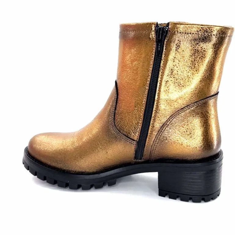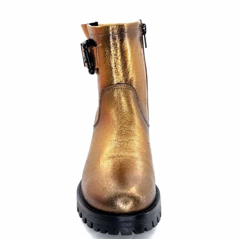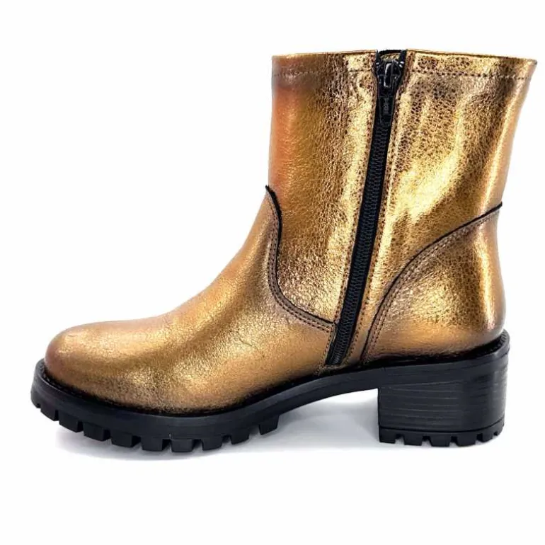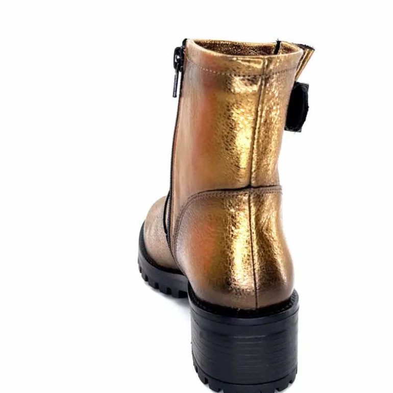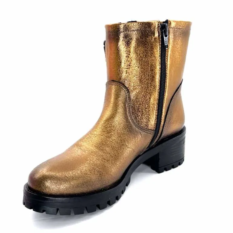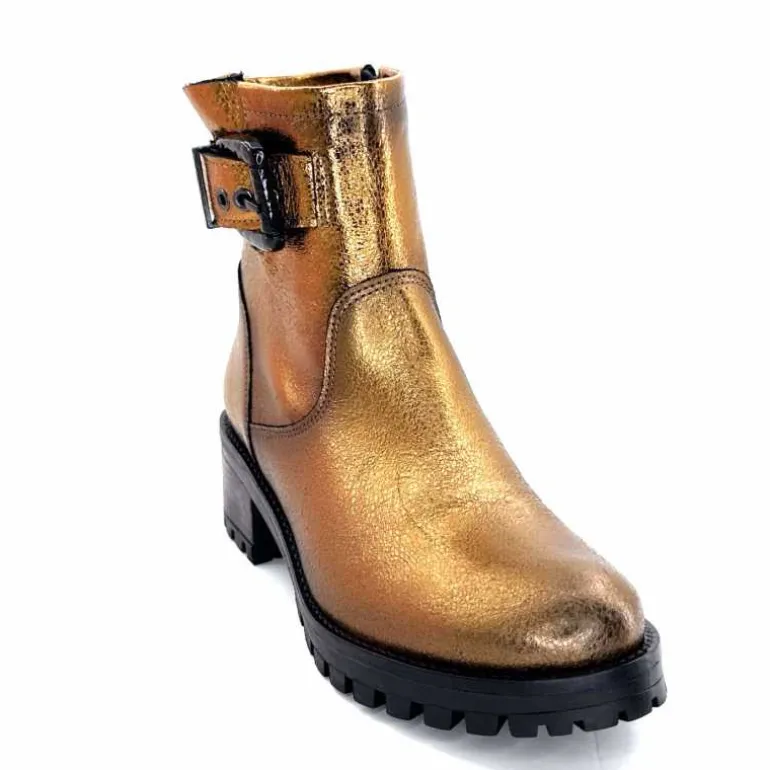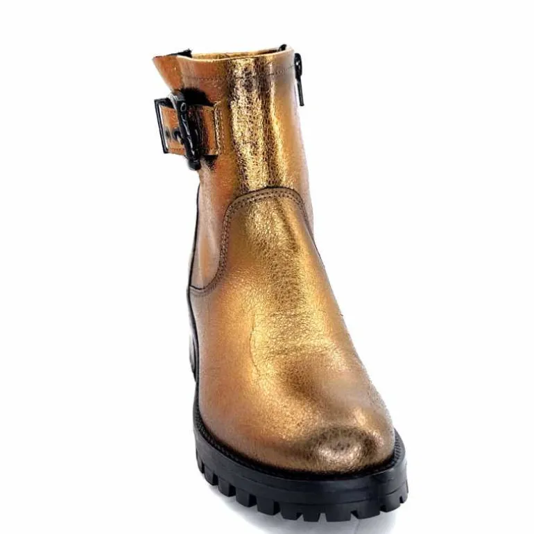 follia dolce Bottines Bikers Ivoire Caici Cuir Bronze Or Sale