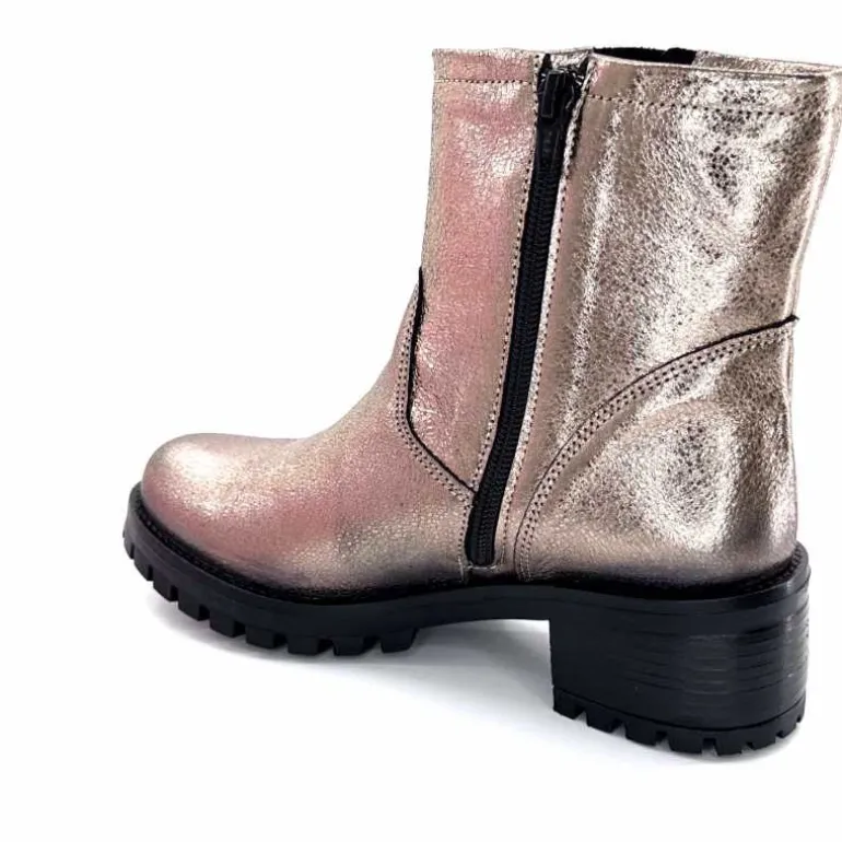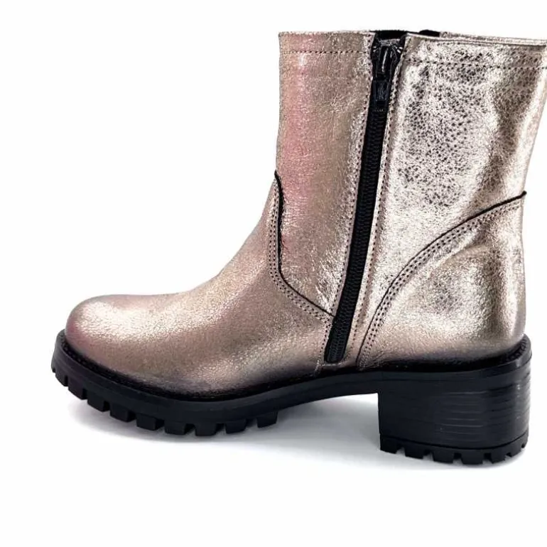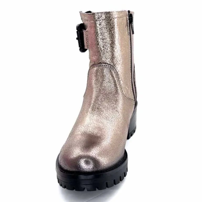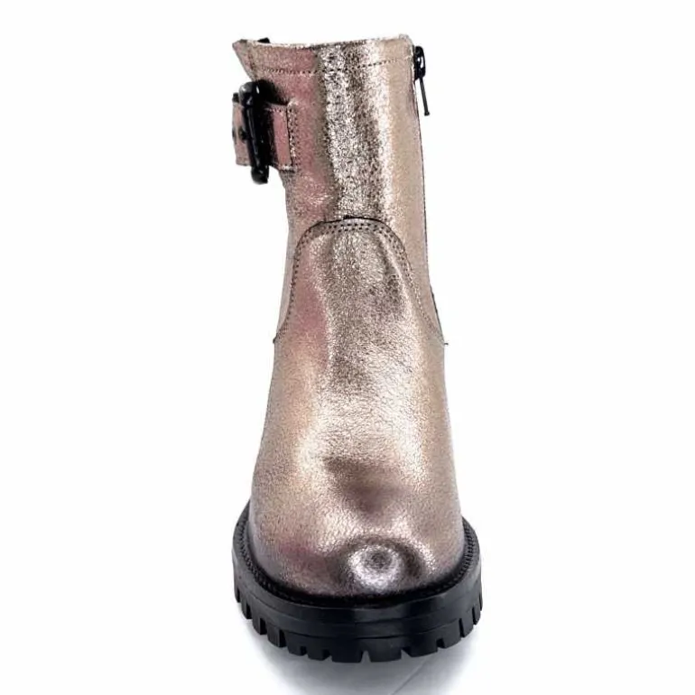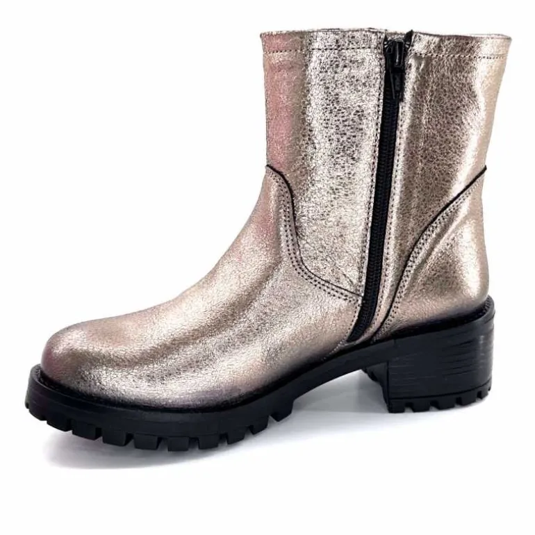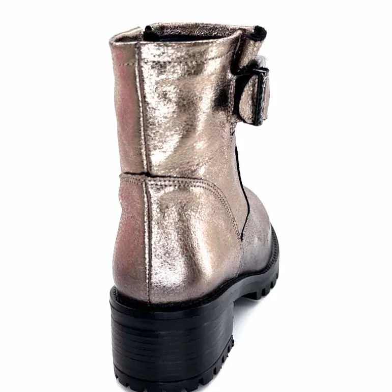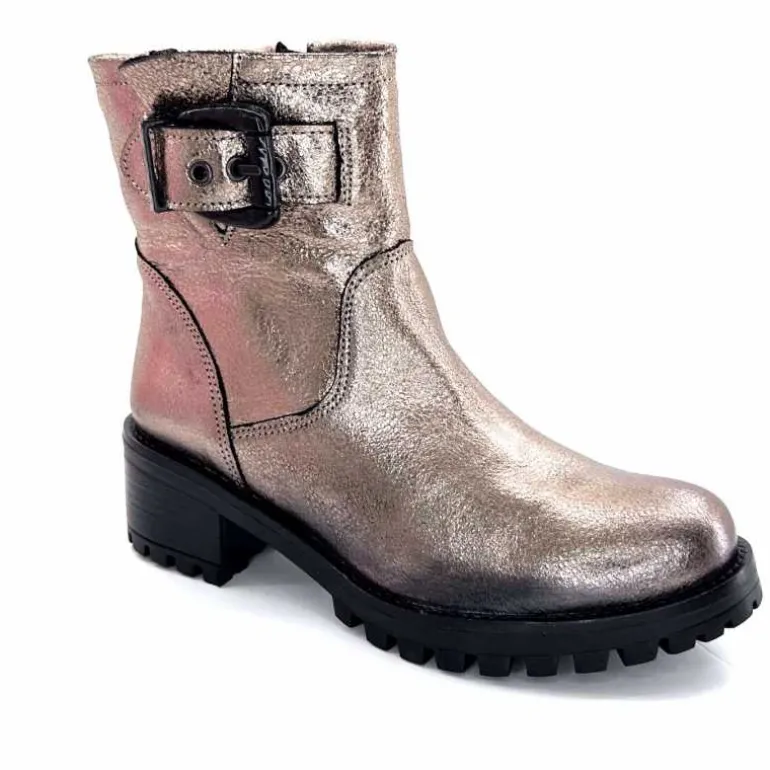 follia dolce Bottines Bikers Ivoire Caici Cuir Métal Gris GrisMétal Store