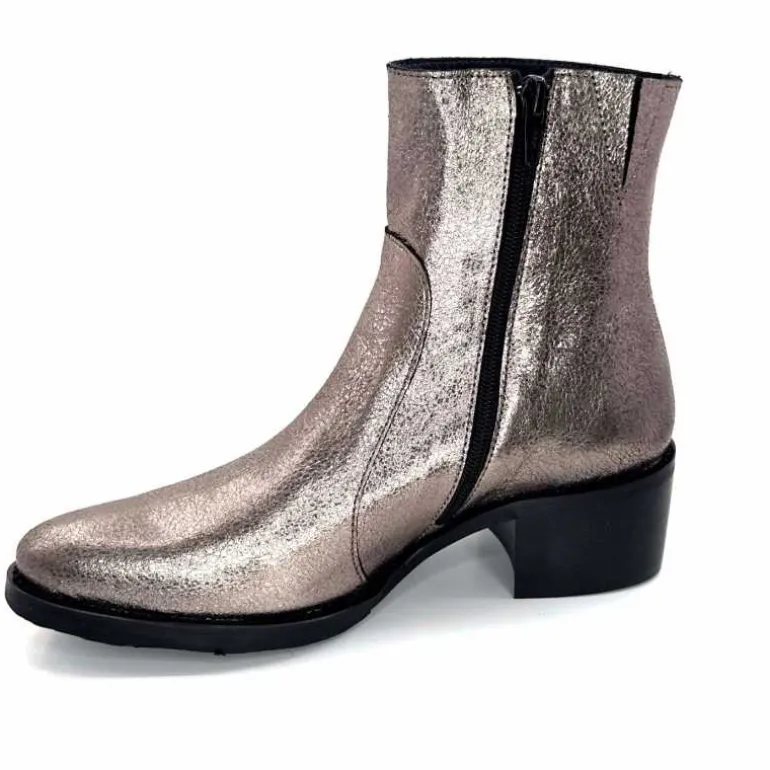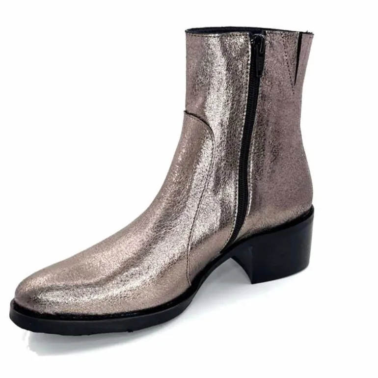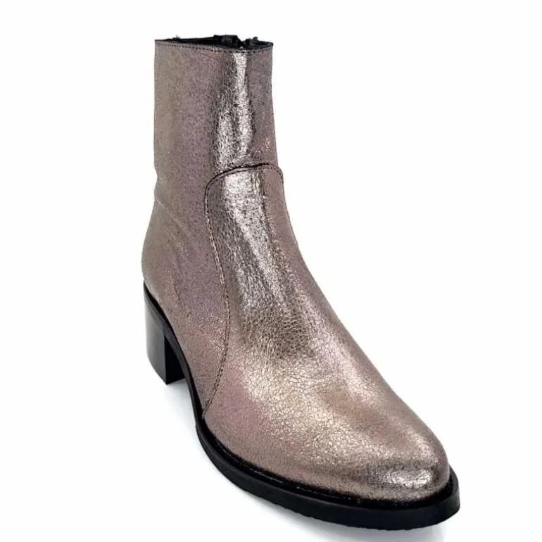 follia dolce Bottines Santiags Ivoire Tea Cuir Métal GrisMétal Online