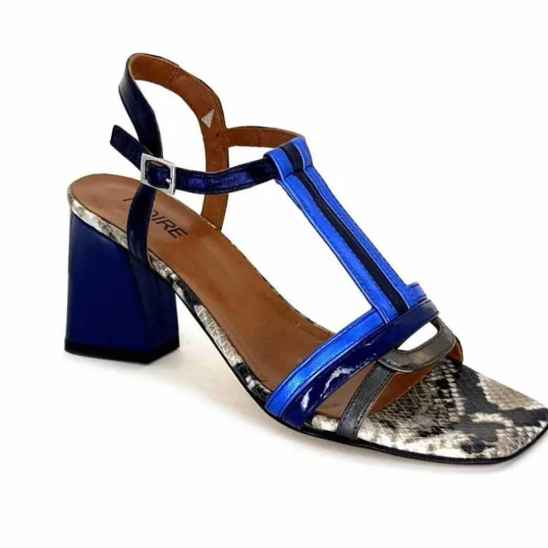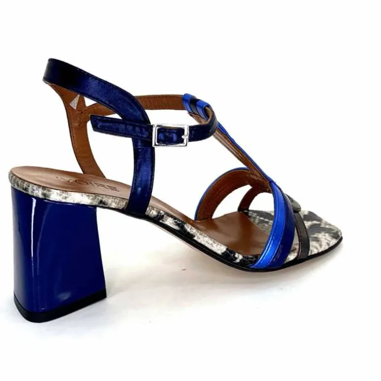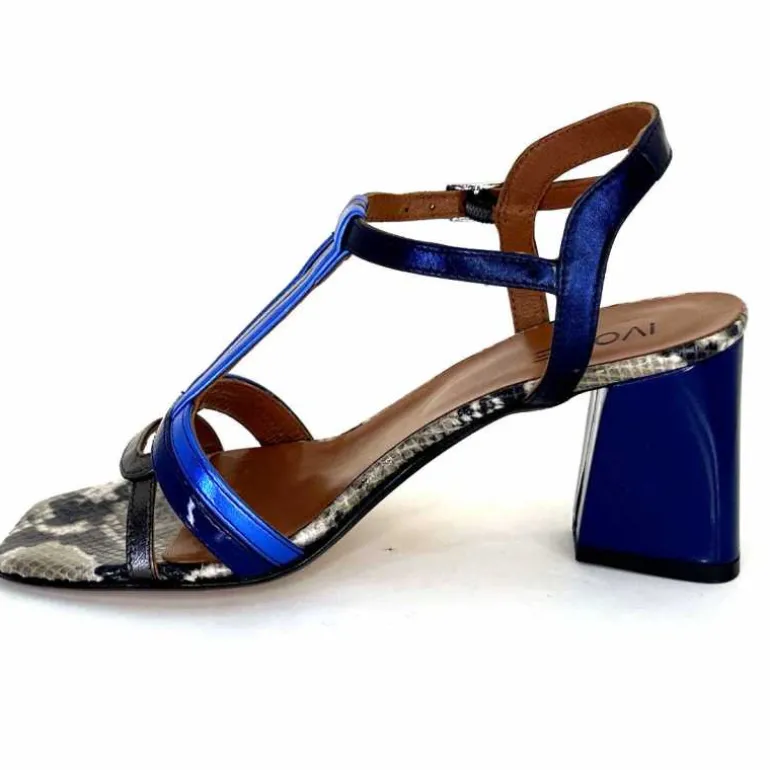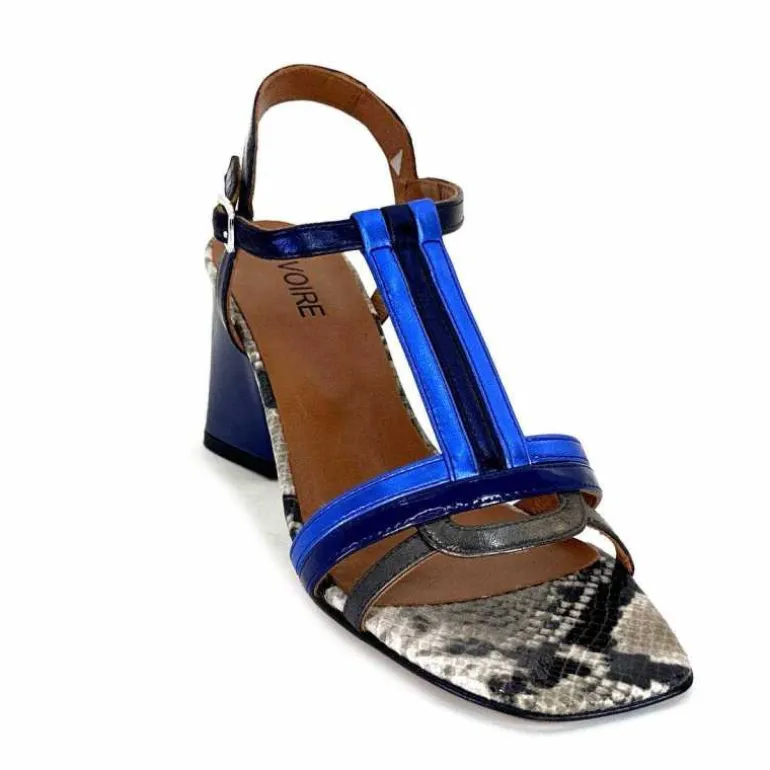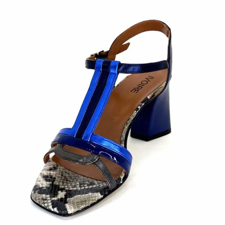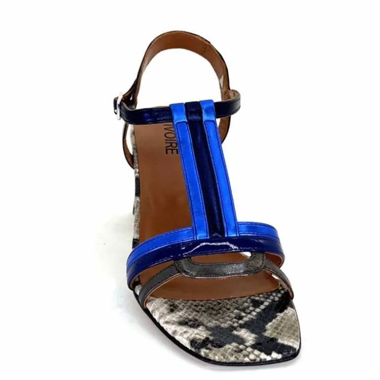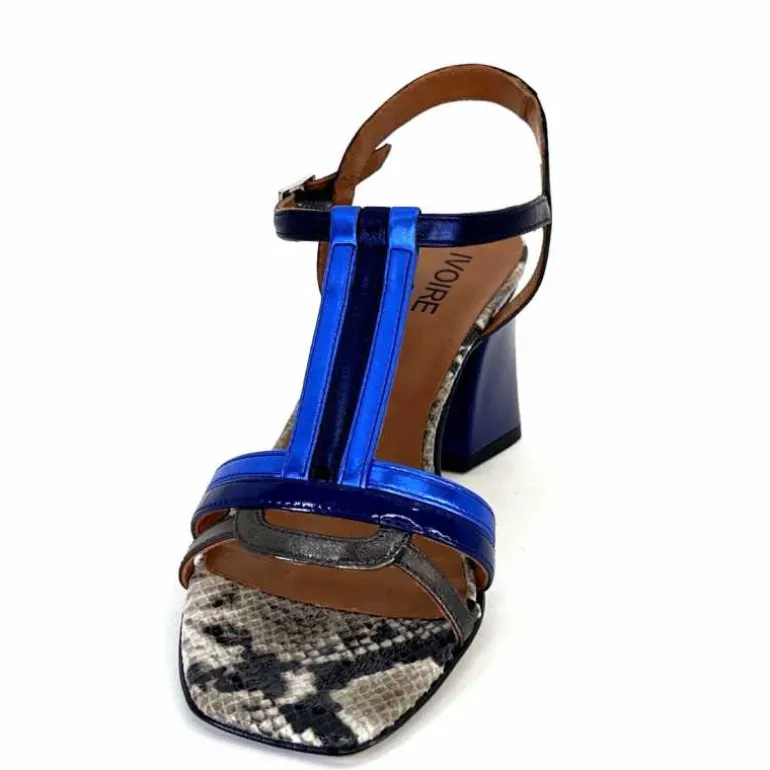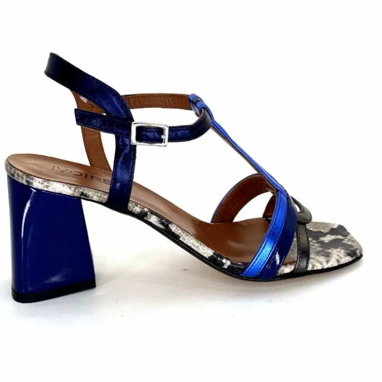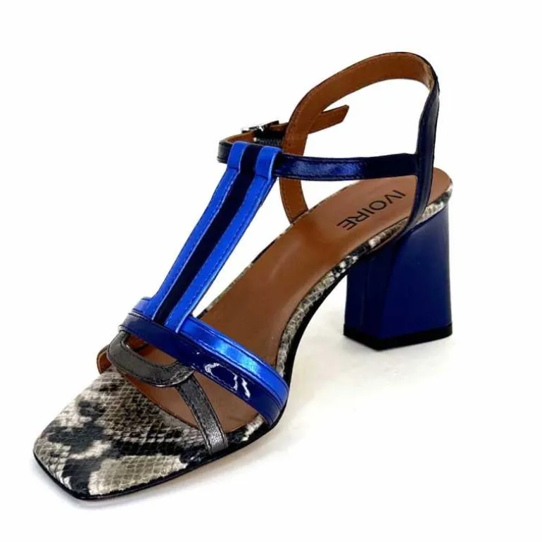 Ivoire0352 Sandales à Talon Ivoire K251 Vally Cuir Métallique Bleu Sale