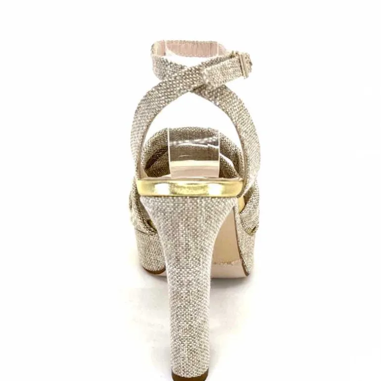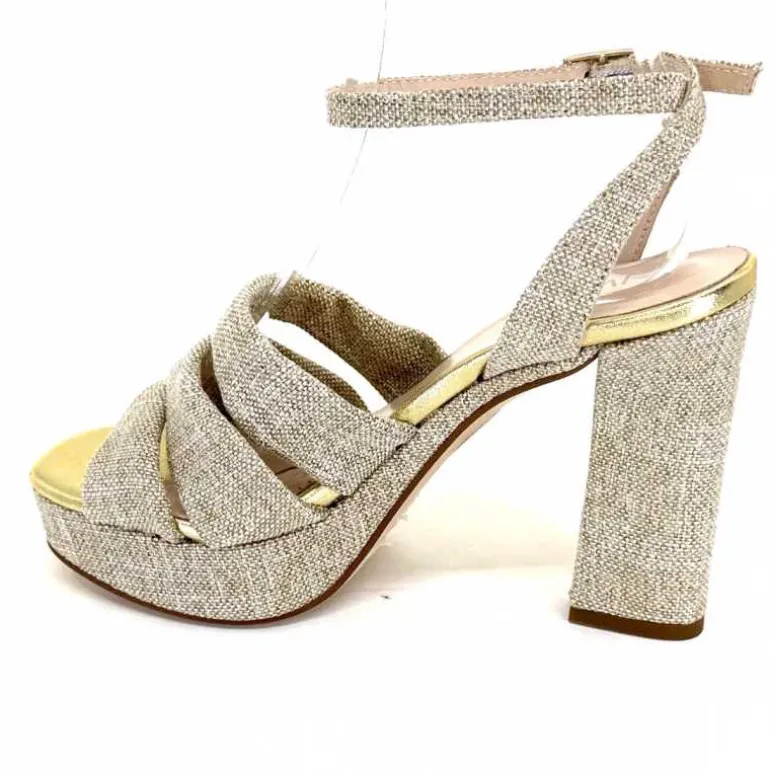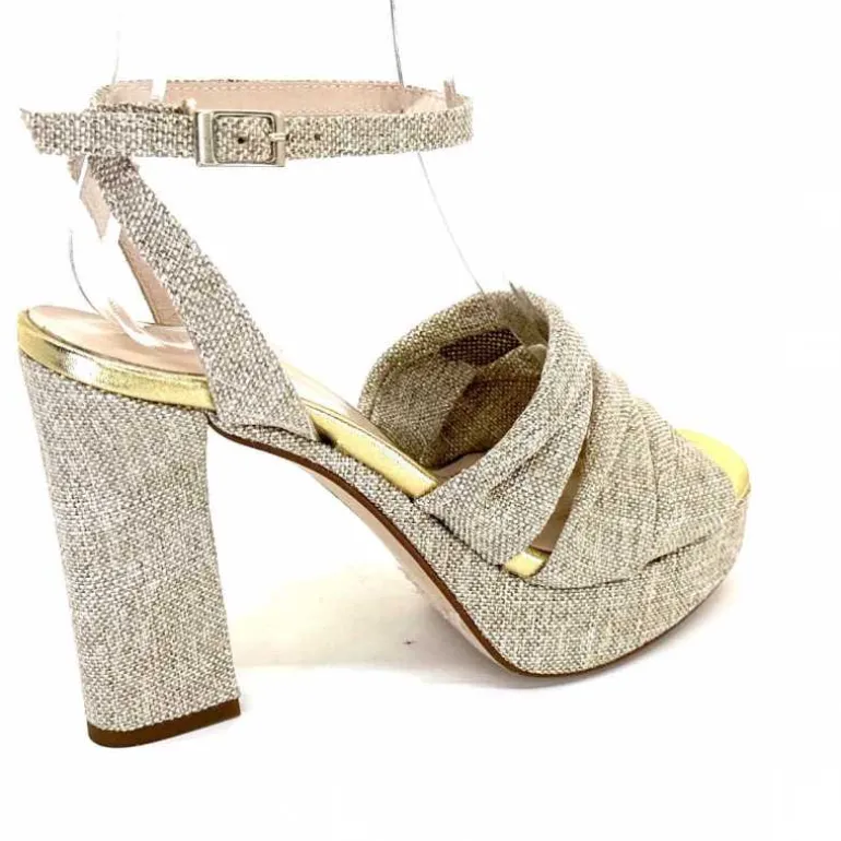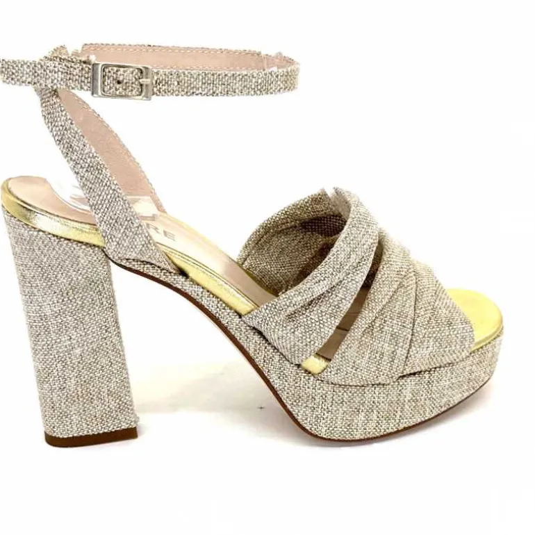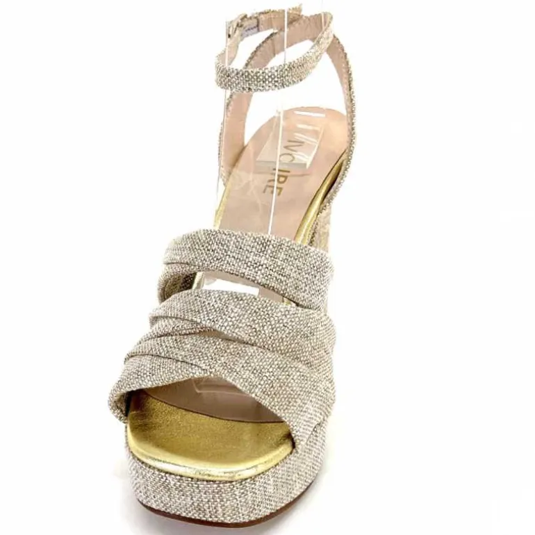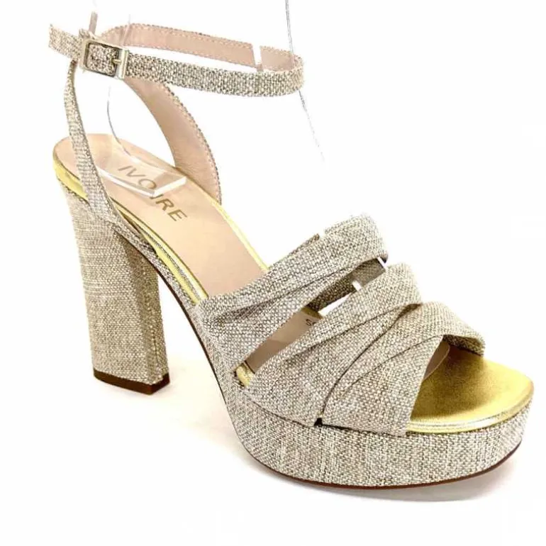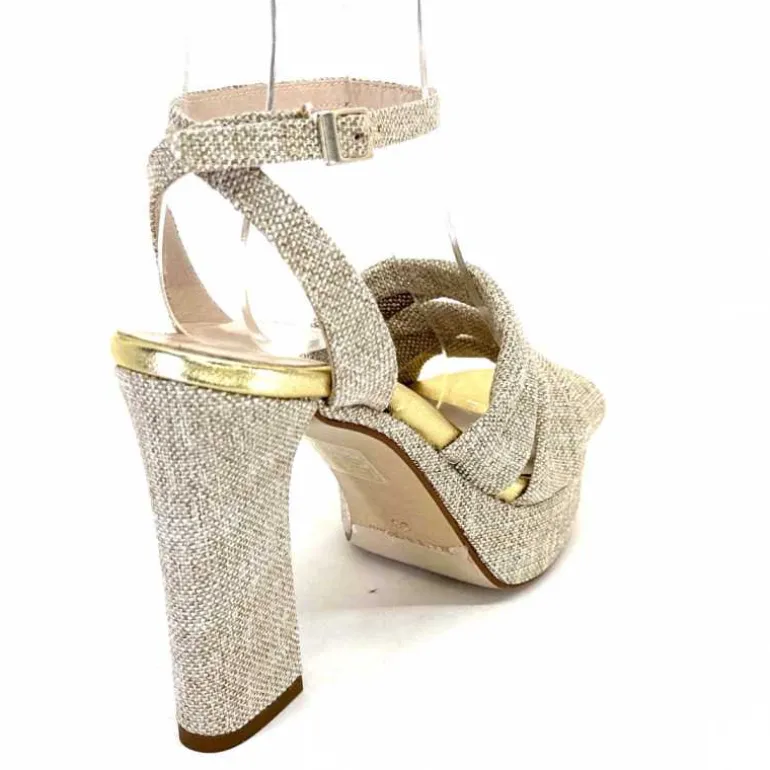 Ivoire0376 Sandales Plateforme à Talon Ivoire 55908 Textile Or Beige Shop