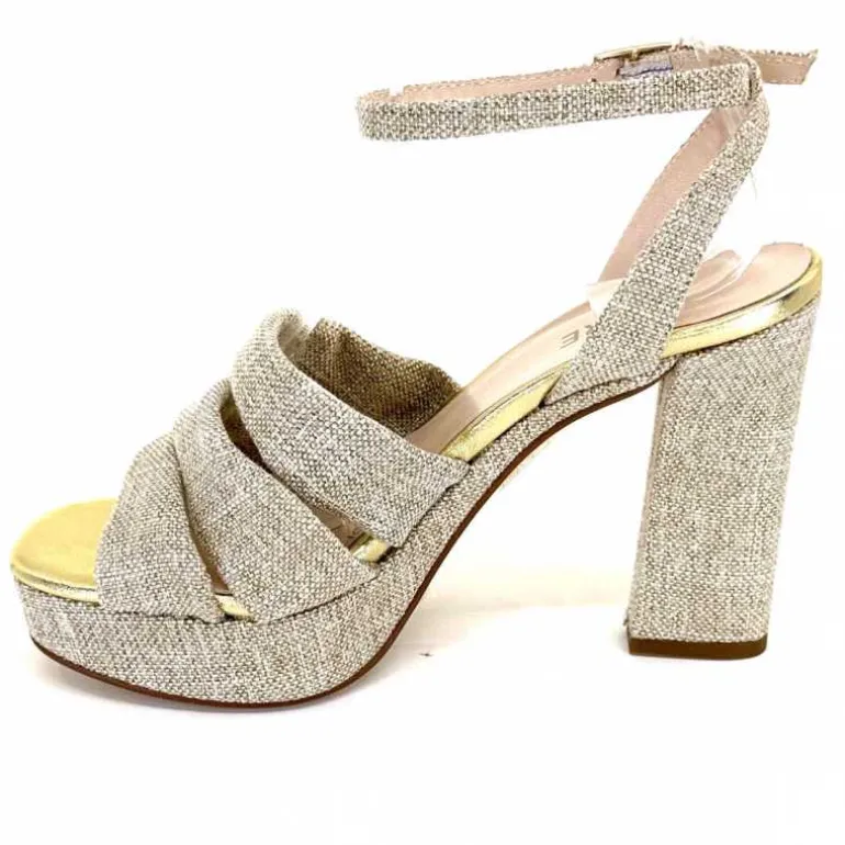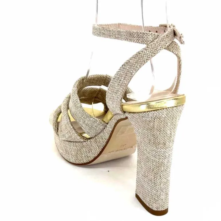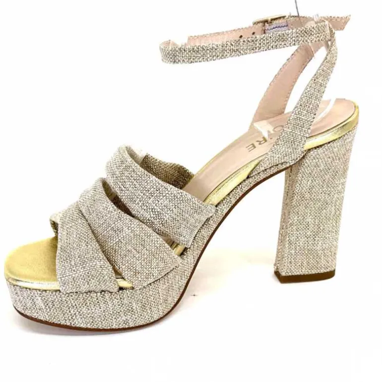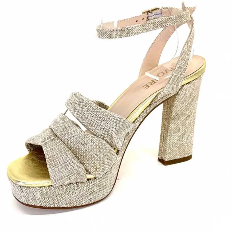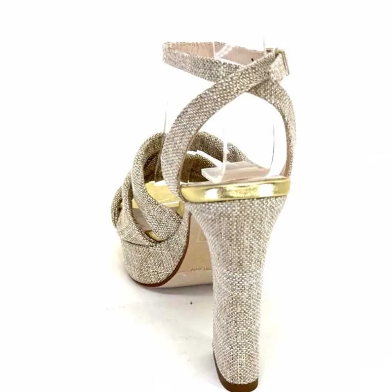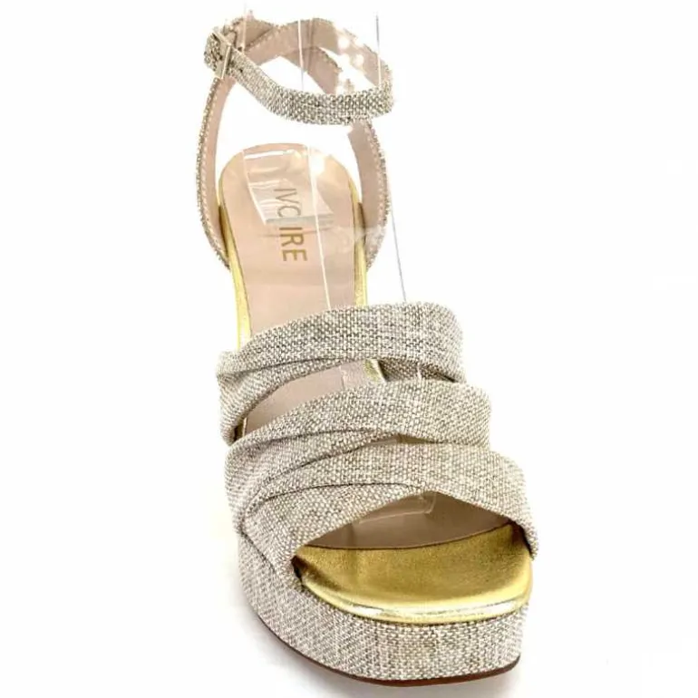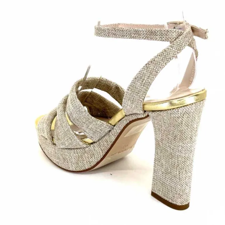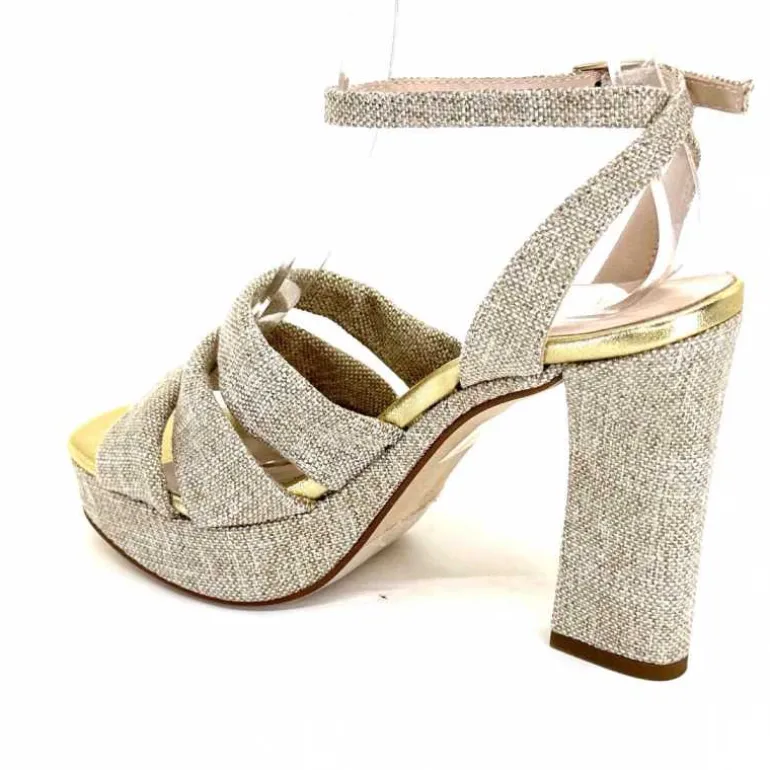 Ivoire0376 Sandales Plateforme à Talon Ivoire 55908 Textile Or Beige Shop