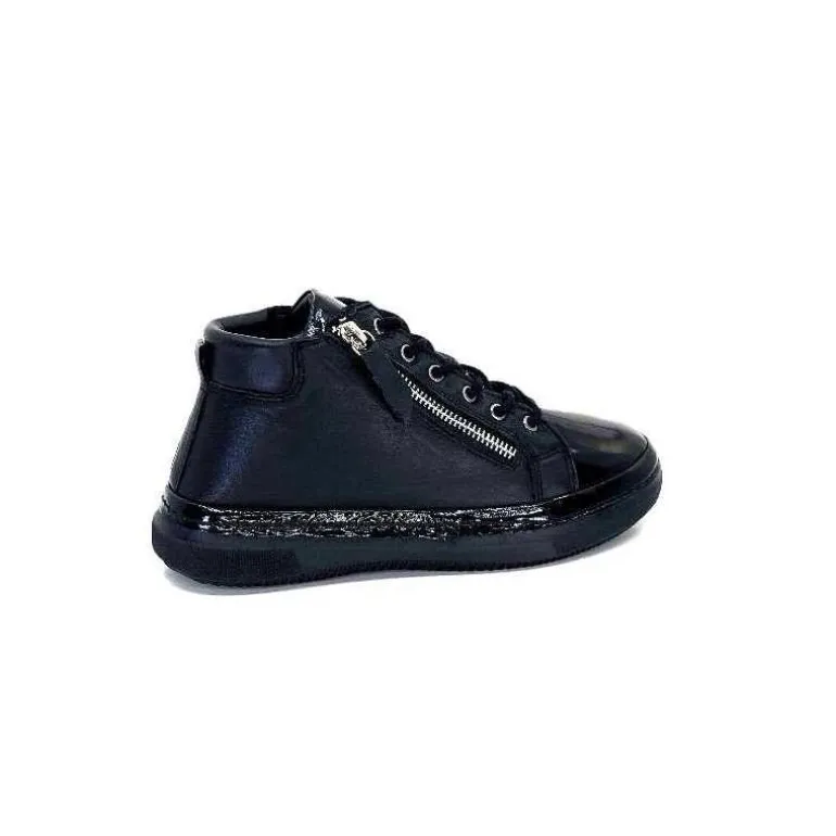 Ivoire0401a Baskets Avec Fermeture Éclair Ivoire 500-358 Cuir & Vernis Noir Cheap