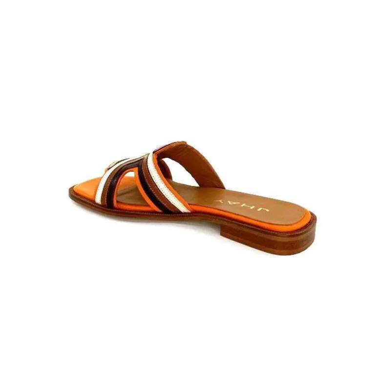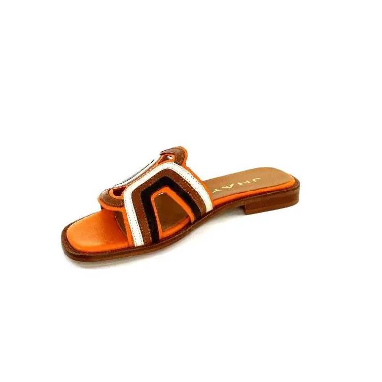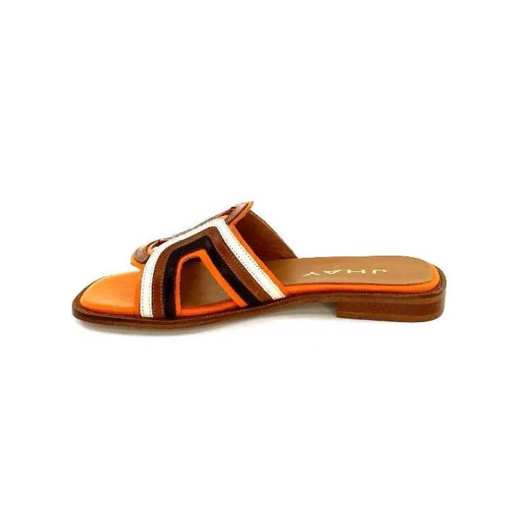 JHay Mules 2305 Cuir Marron Blanc Orange Online
